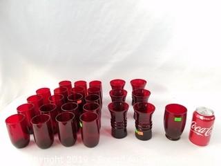 Lot #0158: 26pc Royal Ruby Anchor Glass Sm. Drinking Glasses