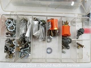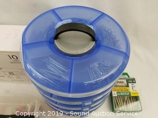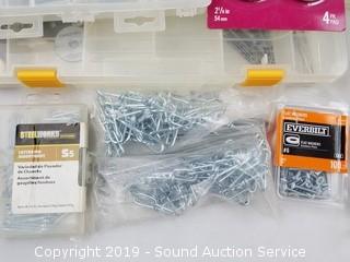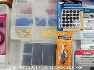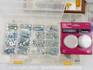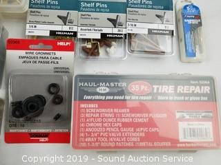 Item Description: Includes latex repair kit, furniture sliders, hardware organizers loaded, various shelf pegs, screws, tire repair kit, wire hook chains, carbon monoxide alarm and more.