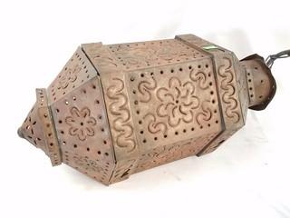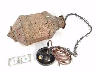 Lot #0236: Hand Crafted Metal Shade Hanging Swag Lamp