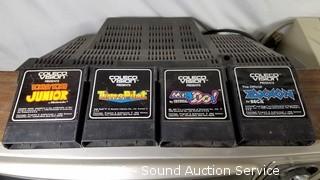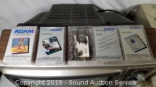 Item Description: First mass produced computer system, used largely for word processing applications. At the time the system used a standard TV for the computer's monitor. Comes with a standard TV. Includes 2 controllers, keyboard, 8 game cartridges (Q-Bert, Frogger, Donkey Kong Jr., Venture, Loopine, Time Pilot, Mr. Do and Zaxxon with instruction books for some of the games), Adam Cassette Game Packs, Adam Super Game Pack Buck Rogers, Smart Logo with manual and original box, original set up manual, word processing and Smart Basics with manuals.