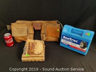 Lot #0220: Leather Tool Belt, Bags & SnoTrac Tire Chains