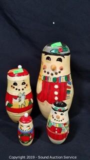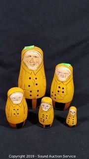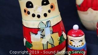 Lot #0314: Pair of Hand Painted Wooden Nesting Dolls