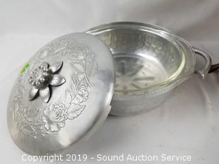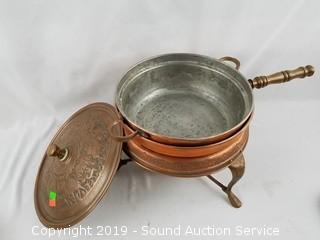 Lot #0193:     Vtg. Covered Casseroles & Copper Chafing Dish
