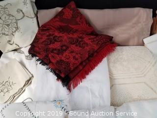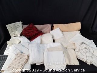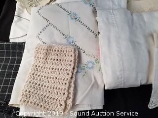 Lot #0175:     Vtg. Embroidered/Crocheted Table Cloths & Napkins