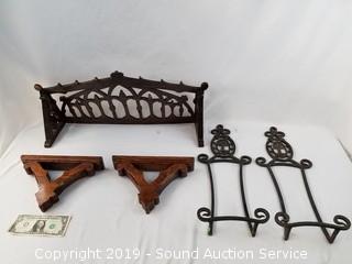 Lot #0156: Wrought Iron Plate Racks & Wood Brackets