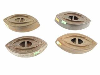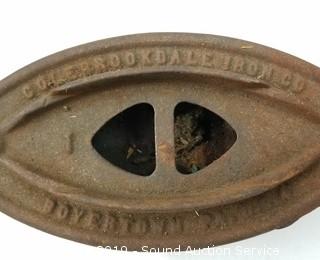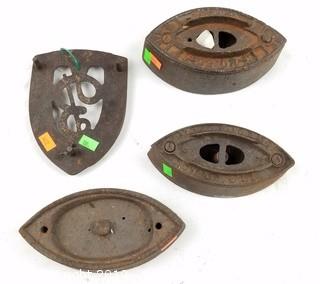 Item Description: 4 are marked Colebrookdale Iron Co. #1, 2 & 3 Irons. Only one has a handle & 1 trivet.