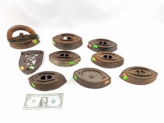 Lot #0100: 8 Vintage Cast Iron Sad Irons