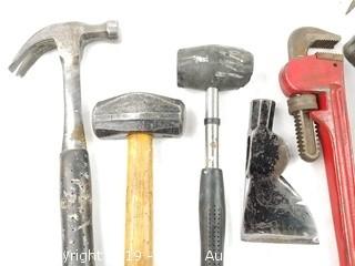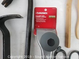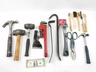 Item Description: Carbide scraper, hatchet head, crow bar, pry bar, hammer, rubber mallet, pipe wrench, wire brush, and more.