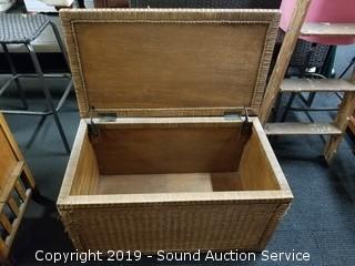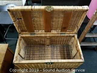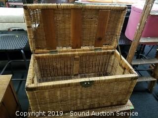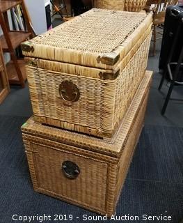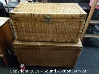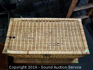 Item Description: 16" H x 32" W x 16" D, some of the wicker is loose or missing in places. Other is 20" x 36" x 20", looks like has some pet scratches on the corners otherwise good condition.