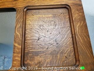 Lot #0365: Quarter Sawn Oak Harp Carved Framed Mirror