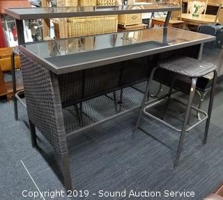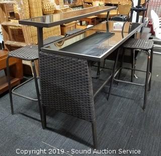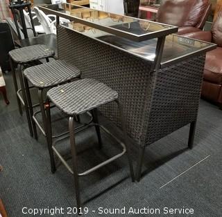 Lot #0012: Rattan Patio Bar w/4 Stools