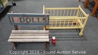 Item Description: Bench is 19" x 22" x 11". Crib is 15" x 27" x 14".