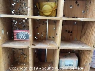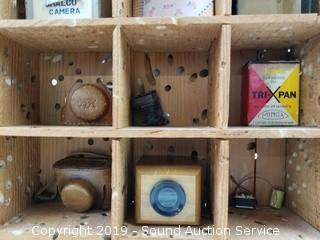 Tons of great items, rare, unique, old, bold! Includes: Blacksmiths Leg Box Vise, Rattan Patio Bar, Tiki Torches, Huge Ceramic Panther Sculpture, Collectible Coins, Vtg. Kitchen Gadgets, Vtg. Tools (Levels, Planes, Braces, Molding Planes), Some Nice Wicker Baskets, Beautiful Oak Dining Table, Blowers, Trimmers, Cordless Drills, Noritake Old Country Roses Fine China, Collectors Books, Miniature Cameras, Vtg. Doll / Child's Furniture, Vtg. Metal Bakers Cabinet & Much More!
