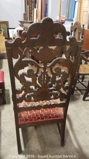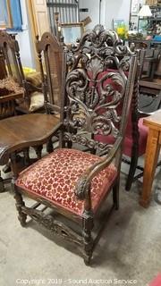 Lot #0054: Antique Carved Splat Back Throne Arm Chair