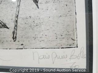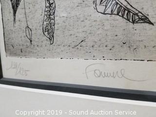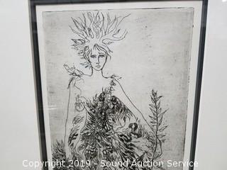 Item Description: Professionally framed and matted. Pencil signed (refer to photos for signature, titled "Fawne", dated 1970. Looks like a Dryad. Overall 32' x 26".