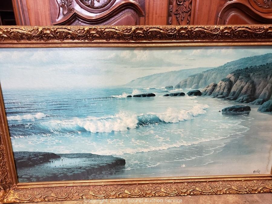 Lot #0298: Beautiful Gold Gilded Ocean Print by Maurice Meyer