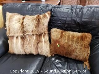 Lot #0329: Genuine Fur Pillow & Faux Fur Accent Pillow