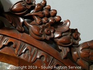 Lot #0108: Incredible Mahogany Ornate Beveled Glass Mirror