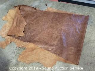 Item Description: 22" x 32" rug, approx. 28" x 8ft leather piece, and 3 pillows.