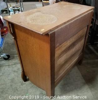 Item Description: Some wear to the top, adds character. Wood has a nice aged look to is. 30" H x 31-1/2" x 16-1/2"