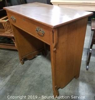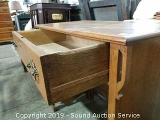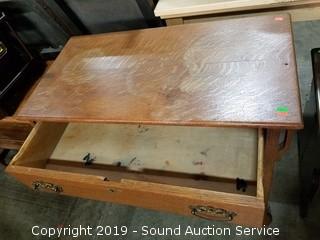 Lot #0045: Vtg. Quarter Sawn Oak Hall Table w/Single Drawer