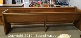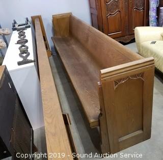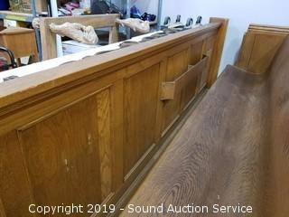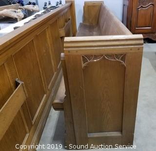 Lot #0056: Vtg. Solid Oak Church Pew & Rail / Wall