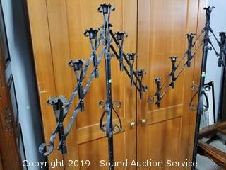 Lot #0008: Wrought Iron Adjustable Height & Arm Candelabras