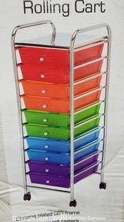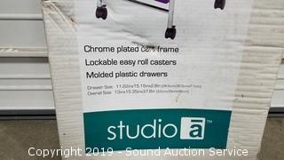 Item Description: Chrome plated frame, molded plastic drawers. Looks new and complete in original box.