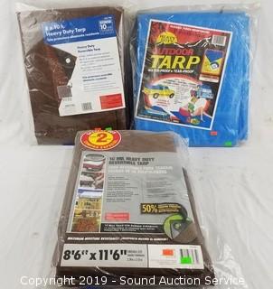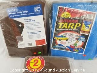 Item Description: Brown 8ft x 10ft, blue 11.5ft x 15ft 8", and 2 brown 8.5ft x 11ft 6".