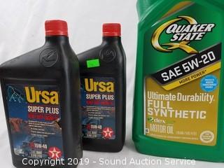 Item Description: 2qt's of SAE 15W-40, 5qt's Quake State SAE 5W-30, and 1.25 gallon SAE 5W-20.