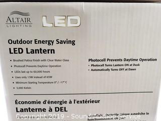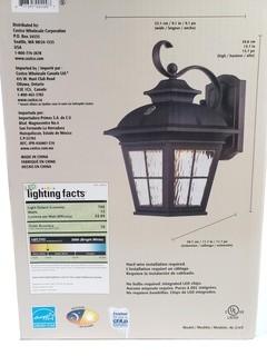 Item Description: Like new, works. Brushed patina finish with clear water glass. 13W, 700 lumen, 3000k color. 15.7" H, 9.1" W, 11.7" D.