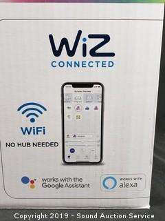 Item Description: Has power, looks new. Works with Google assistant or Alexa. Schedules, motion sensor, scenes and voice control, mobile app. 14.5" H, 9" W, 10.5" D. 16 million colors.
