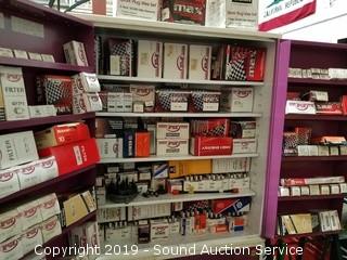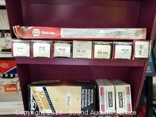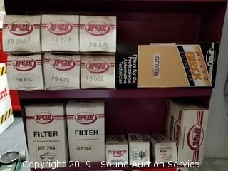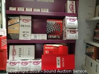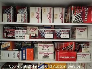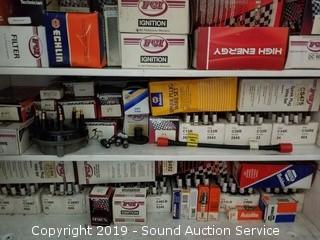 Item Description: Loaded with ignition & other automotive parts - Spark Plugs, Thermostats, Fuel Filters, Distributor Caps, Oil Pressure Switches, Condensers, Points, Rotors, Ignition Coils, Modules. Please refer to photos or come in to preview for full list of parts numbers, makes, models. Locking with key. 36" H x 32-1/2" W x 13" D.