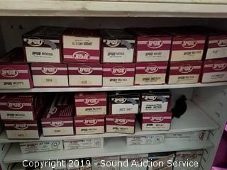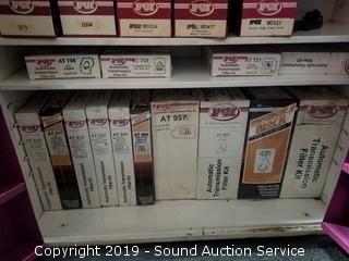 Item Description: Loaded with Brake Pads & Automatic Transmission Filter Kits. Please refer to photos or come in to preview for full list of parts numbers, makes, models. Locking with key. 36" H x 32-1/2" W x 13" D.