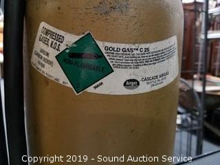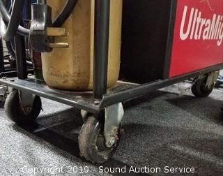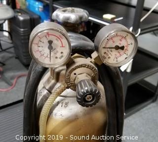 Item Description: Excellent condition. Comes with 2 Welding Masks & Argon Carbon Dioxide C-25 Tank. Has casters for easy movement. 28" H x 32" W x 14-3/4" W. **EDITED** Recently tested by the welding shop next door and everything functions as intended.