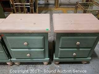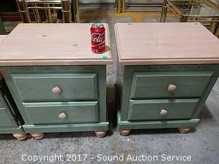 Lot #0048: (2) Cottage Retreat Green Nightstands