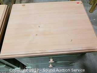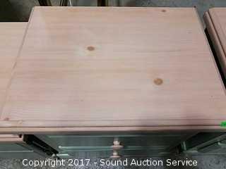 Standard Furniture Co. With Blonde pine top & 2 drawers. Approx. 27" tall, 22" wide & 16" deep. Matches rest of the set.