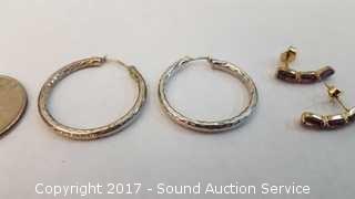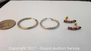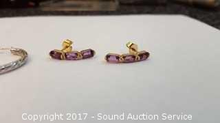 Total Weight: 2.3g Pair of 1" hoop earrings & amethyst earrings.