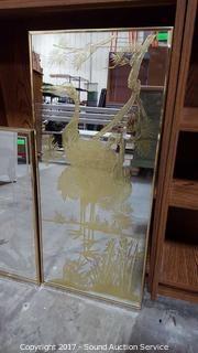 Two are beautifully decorated with Peacocks and Herons Approx. 13" x 29" & 16" x 20".