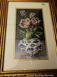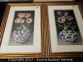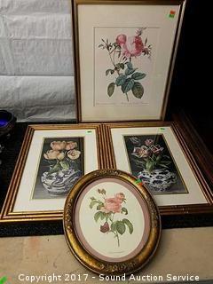 Lot #0026: (4) Framed & Matted Gold Gilded Floral Prints