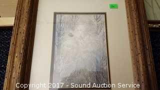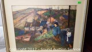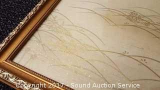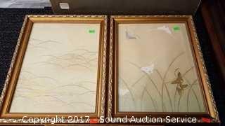 Includes: Falling Leaf by Wulfing, Bon Marche Print, (2) butterfly painted on cloth artwork. Smallest is 13" x 12". Largest is 21" x 18"