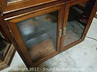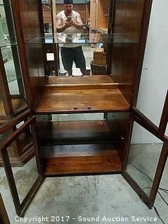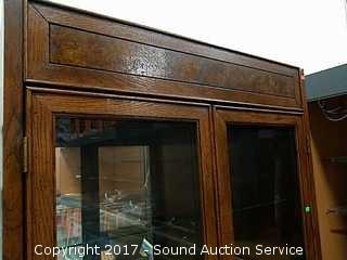 Lot #0053: Fabulous Solid Oak Mirrored Back Curio