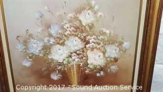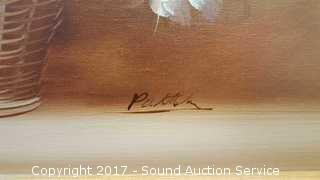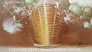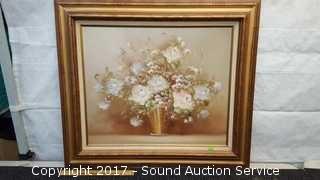 Lot #0194: Original A/S Oil on Canvas Floral Artwork