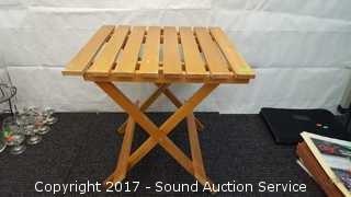 Lot #0029: Wicker Chair & Wooden Folding Side Table