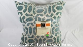 Item Description: All are like new. Burgundy cream contrast scroll print, and aqua blue/cream Studio Chic 20" pillows.