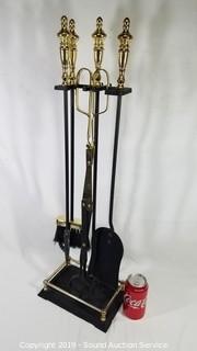 Lot #0102: 5pc. Brass & Wrought Iron Fire Poker Set