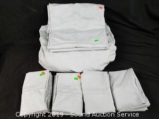 Item Description: A few loose thread, otherwise like new. 1 flat, 1 fitted, 4 pillowcases.