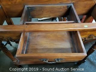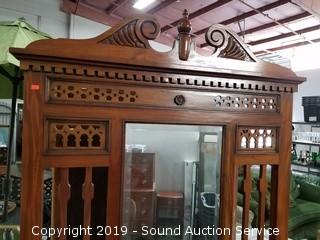 Item Description: Cherry wood? Looks to be missing a top piece for the drawer. Looks to be hand dovetailed, beveled glass mirror. In excellent condition. Approx. 86" H, 37" x 13.5".