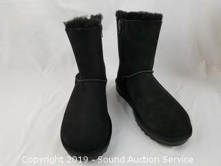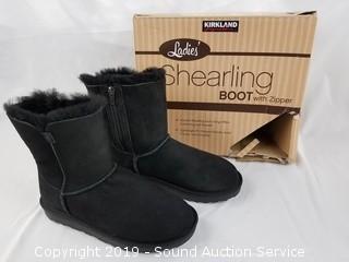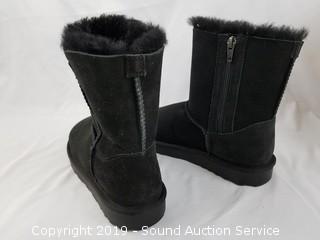 Lot #0161: NIB Ladies Shearling Black Leather Boots S:6