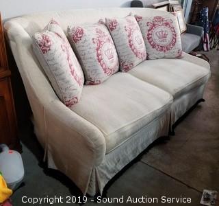 Lot #0026: Nice Sherrill Ivory Sofa w/Crown Pillows